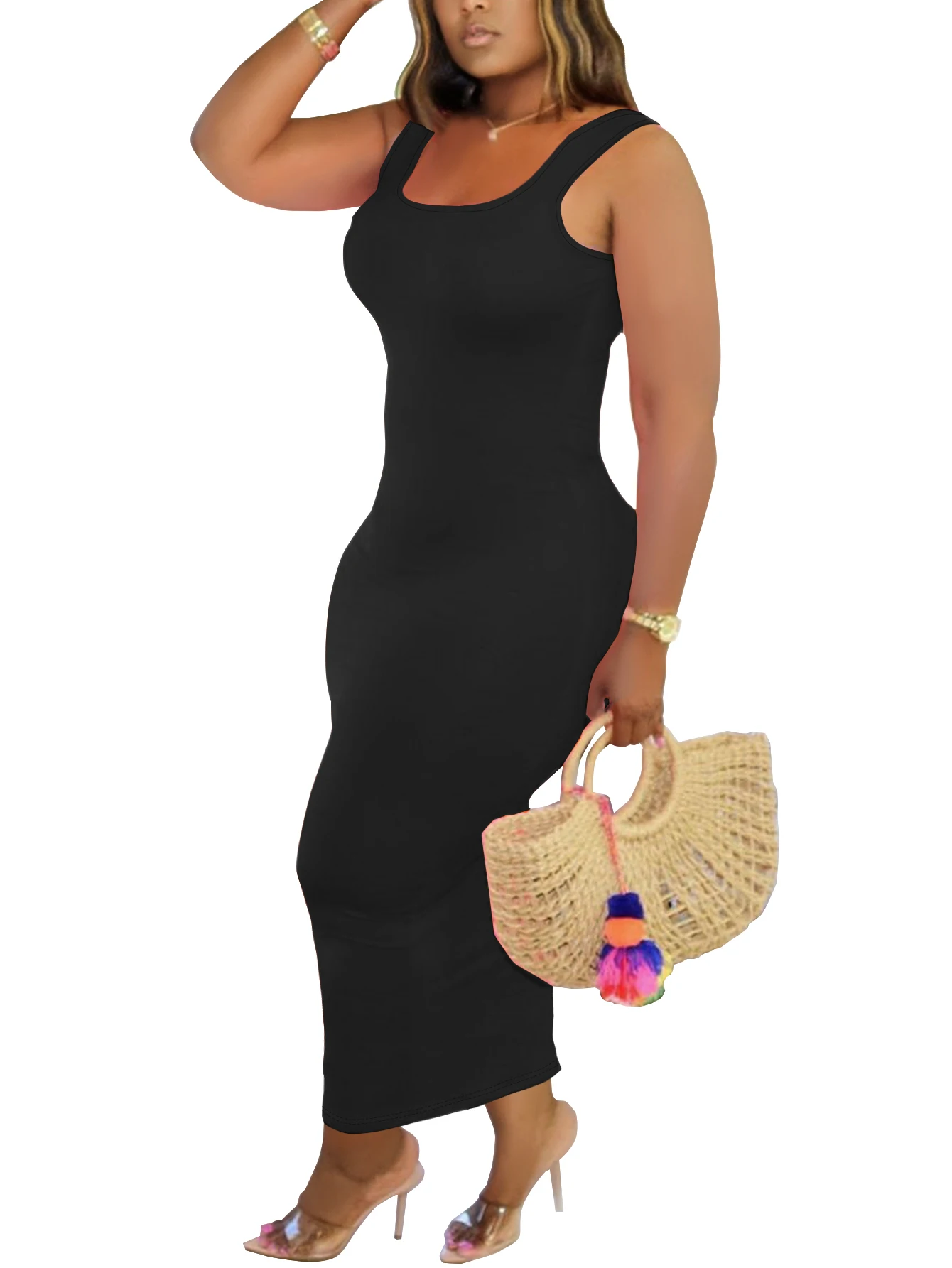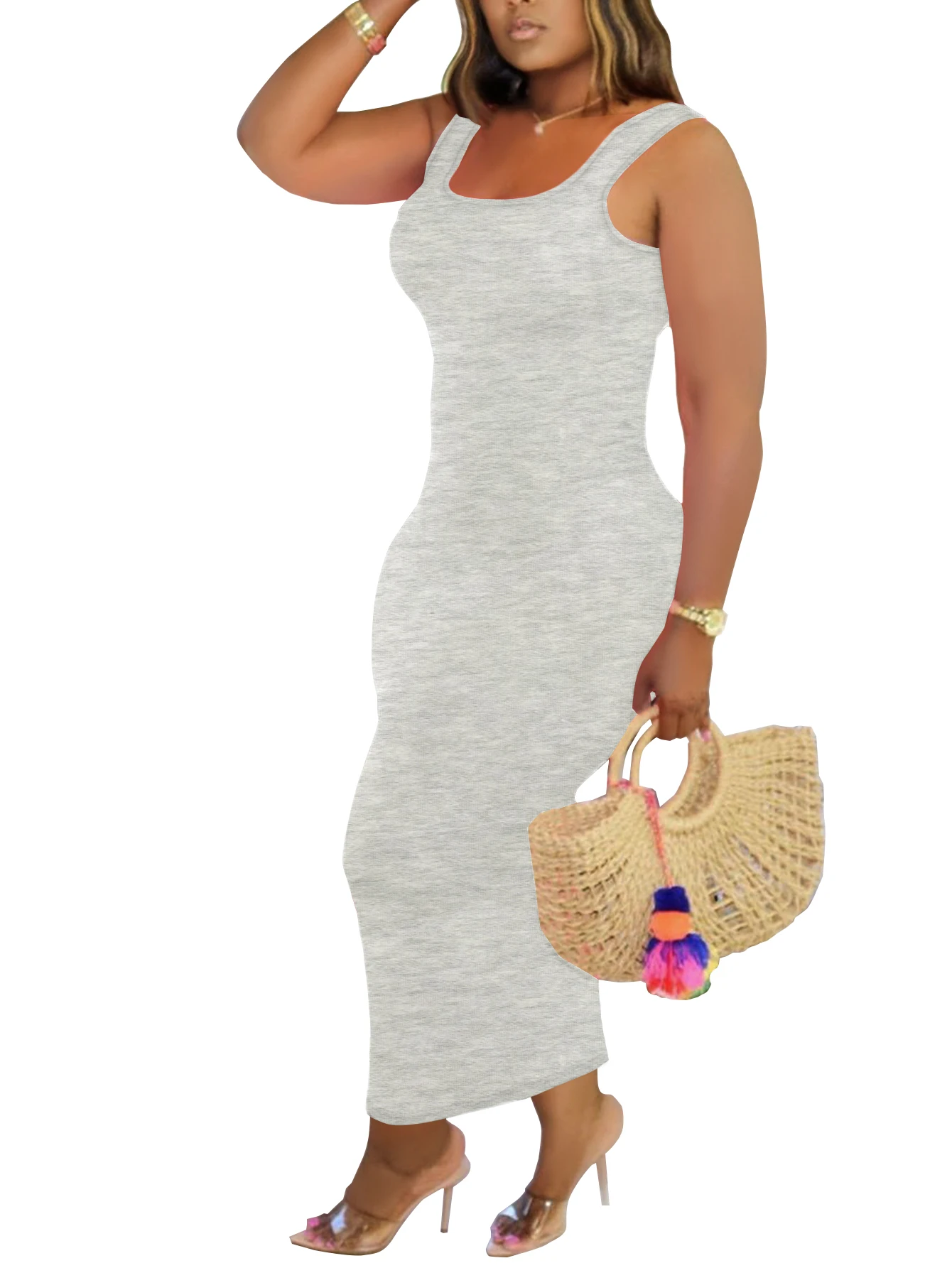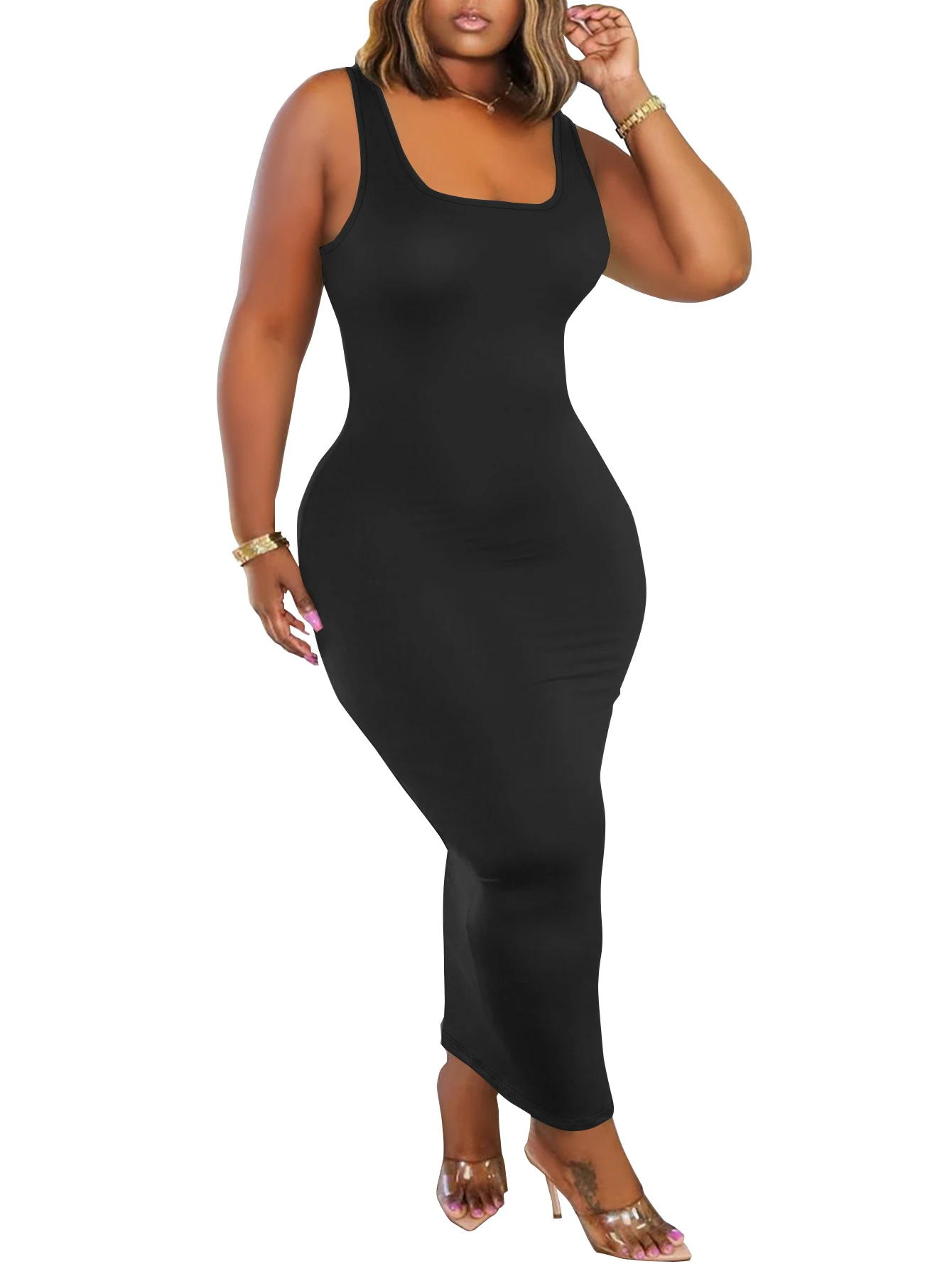 Elegant and slimming! Solid color sleeveless long dress - slim fit, stylish and versatile